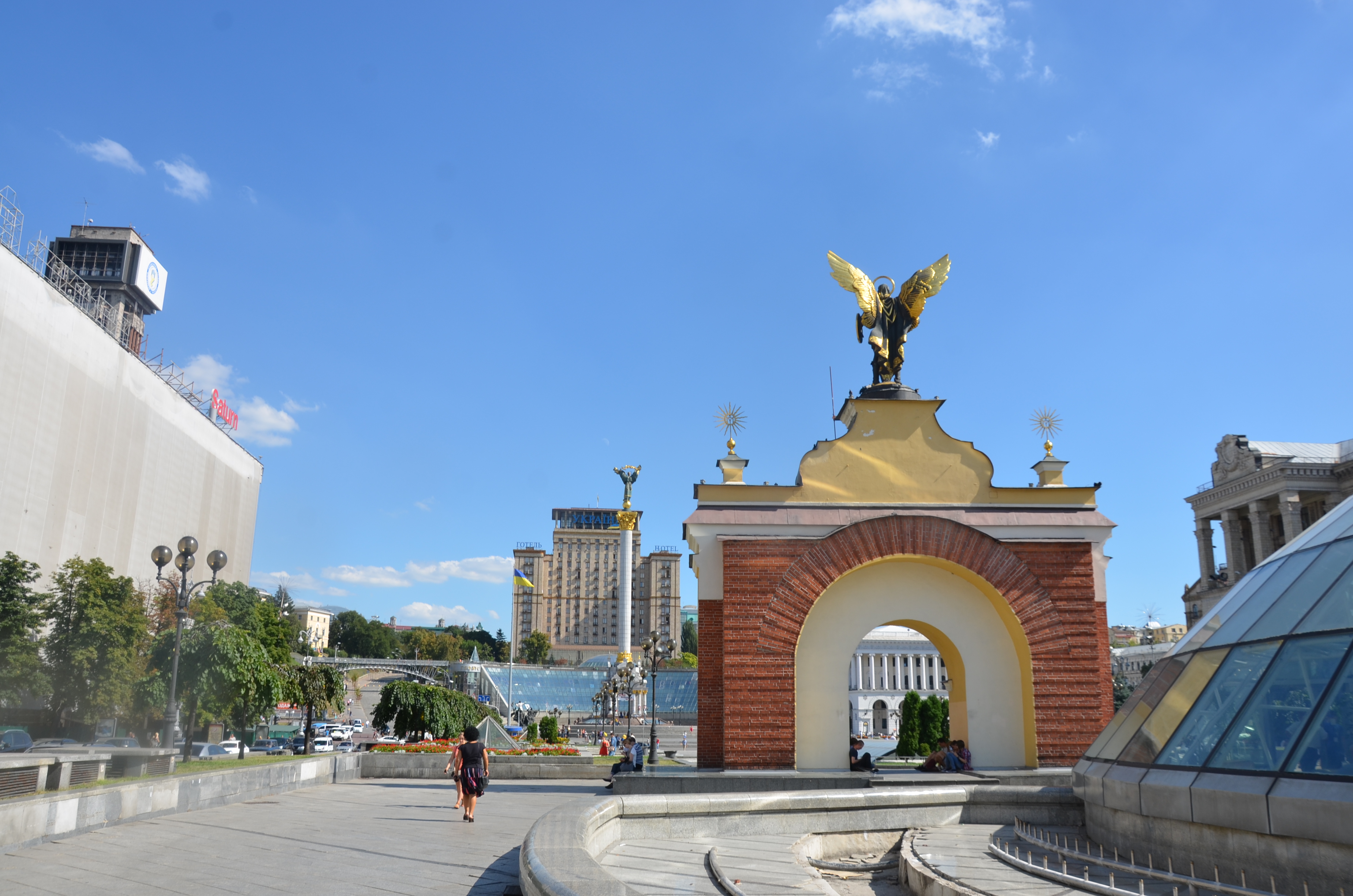 The Independence Square (Maidan Nezalezhnostias) viewed from the back of Micheal the archangel’s statue, Kiev.
